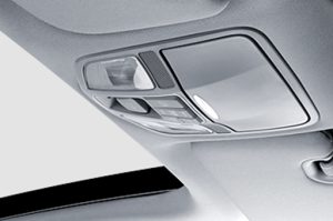 Configuration of overhead console has been modified by adding supersensitive microphone, panorama sunroof and power tailgate system. In addition, the edge of overhead console has been refined with chrome.