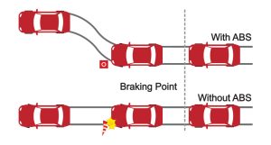Anti-lock braking system helps prevent a braking skids. ABS allows the driver to steer and brake at the same time.